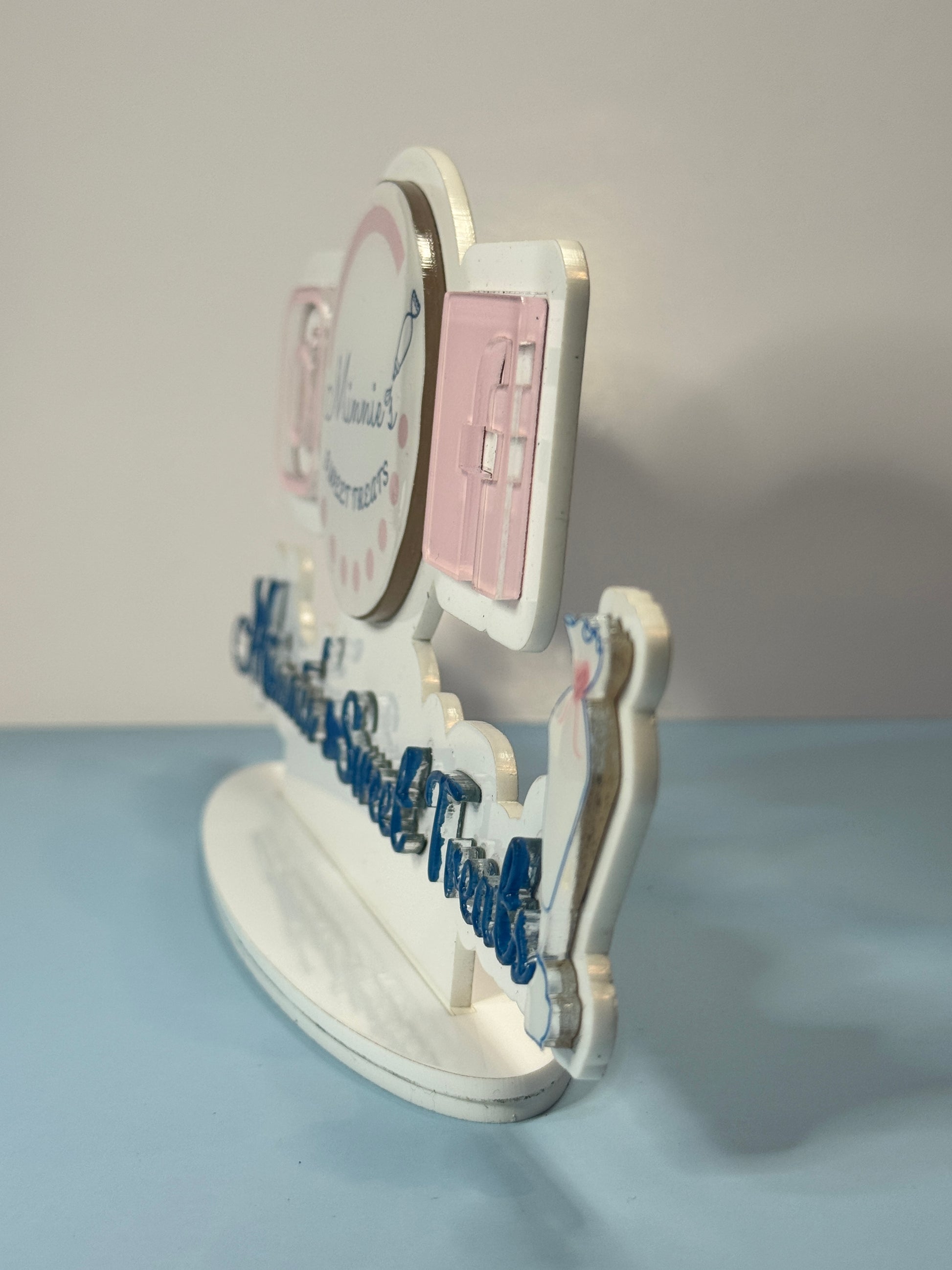 ✨ • Logo on Watermark logo is sealed with Epoxy • If you want the full watermark sealed with Epoxy please select “Epoxy Finish” as finish option in checkout. • Includes 1 acrylic tag • Thickness - bottom layer 1/8"| 3mm draftboard + solid color acrylic( or glitter) 1/8"| 3mm + solid color of choice lettering 1/8" • Size 10 inches length and 4.5 inches in height